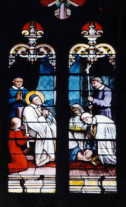 Vincent de Paul, seated, before death, receiving sacrament of anointing. Original in parish, Chatillon sur Chalaronne