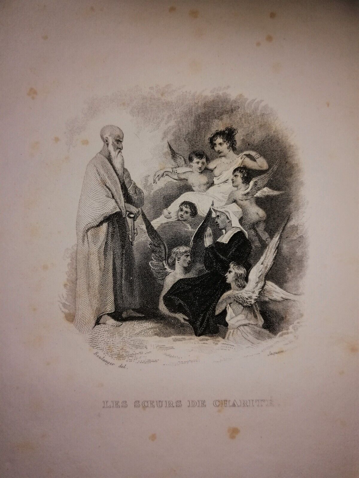 Engraving, France, Sister welcomed to heaven by St. Peter.jpg