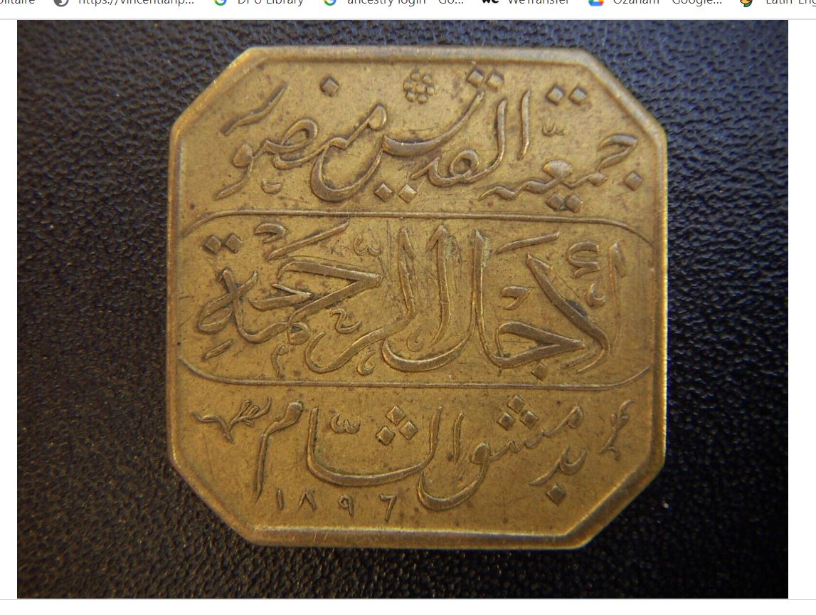 jamīʿat al-qiddīs manṣūr “Holy Society of the Saint; li-Ājli al-raḥma “on behalf of mercy”; bi-dimashq al-shām “in Damascus of Syria.” 1896