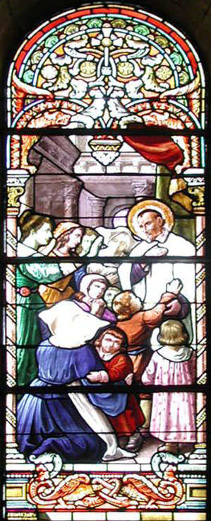 Vincent de Paul entrusting orphans to Ladies of Charity, a Daughter of Charity. Original in church, St-Vincent-de-Paul (Landes), formerly Pouy.