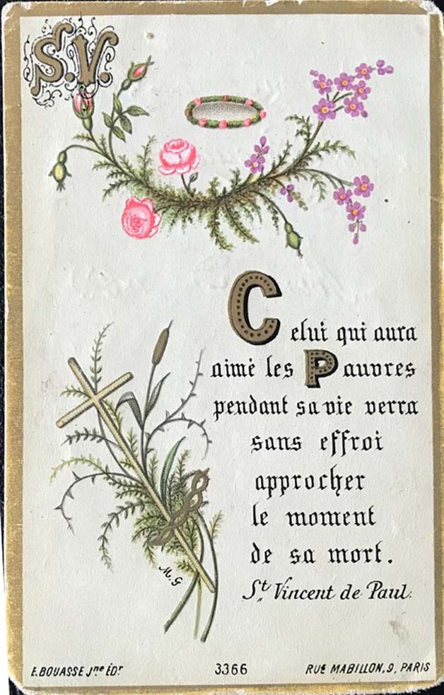 Text: The one who loves the poor during life will fearlessly see the moment of his death approach.