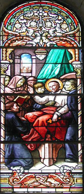 Vincent de Paul blesses his confreres at his deathbed. Original in church, St-Vincent-de-Paul (Landes), formerly Pouy.