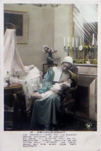 Text: Dr. said: only suction could save him. In a sublime burst of mercy, Sr. Jeanne sacrificed herself for the child of him for whom she had already suffered so much.