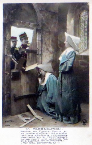 ext: On his return to France, Pierre, now an officer, had to take part in the expulsion of the Sisters. Jeanne recognized him, thinking herself dying a second time, fainted, murmuring: My God, forgive him.