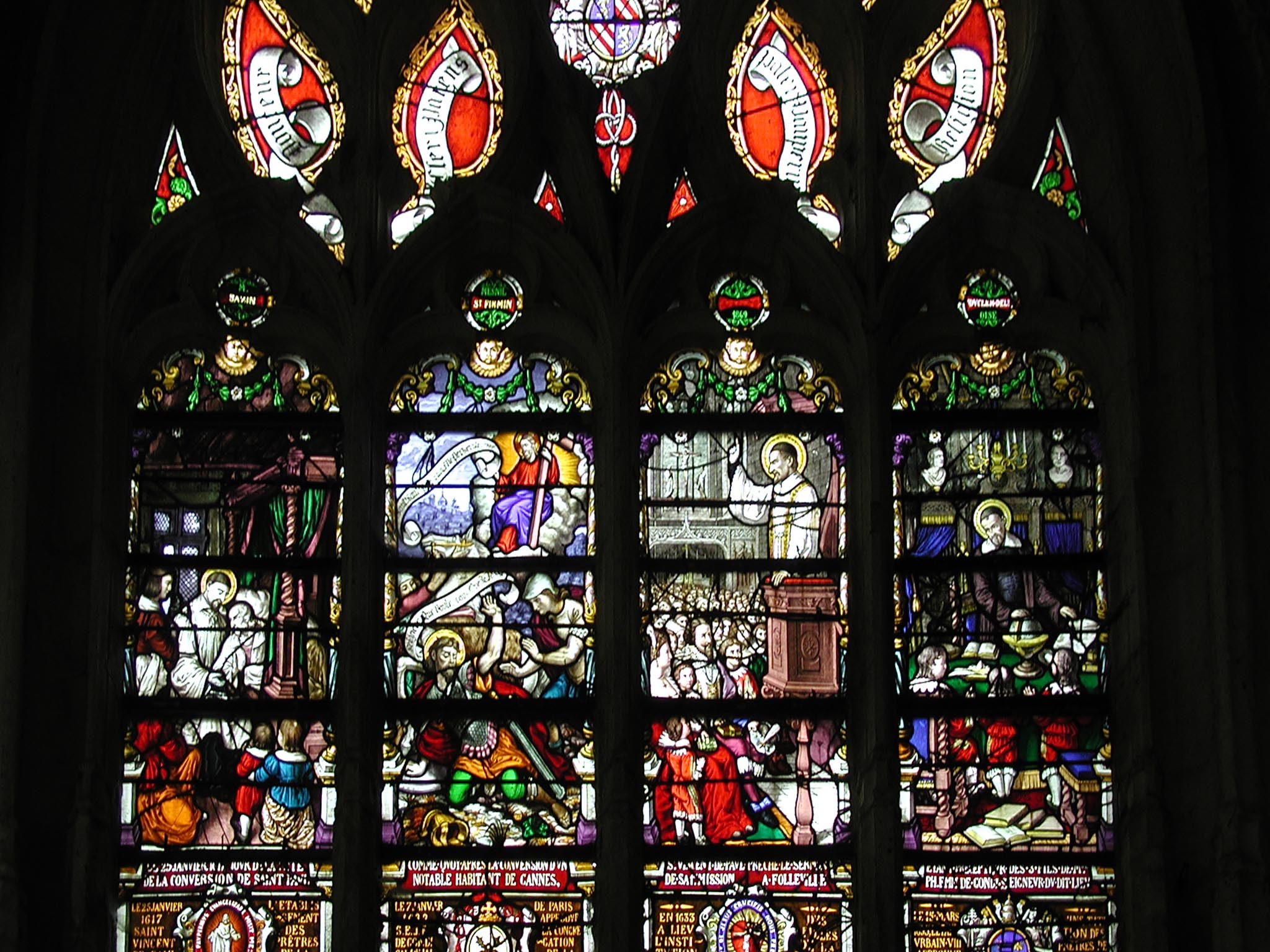 Vincent de Paul assists dying man at Gannes, Conversion of St. Paul, Vincent de Paul preaches first sermon of Mission, teaches three Gondi children
