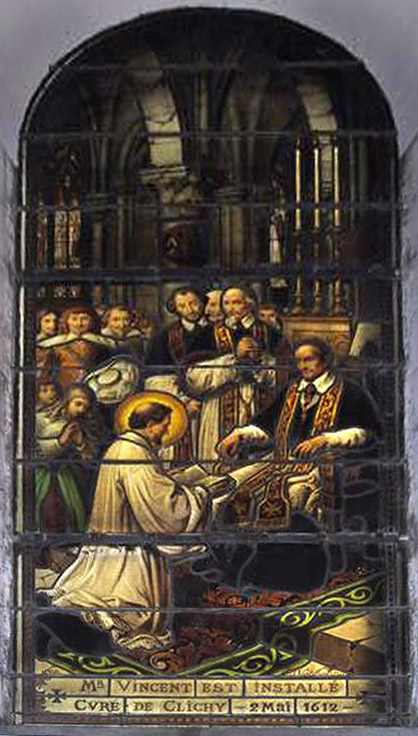 Vincent de Paul, kneeling before bishop, installed as pastor of Clichy