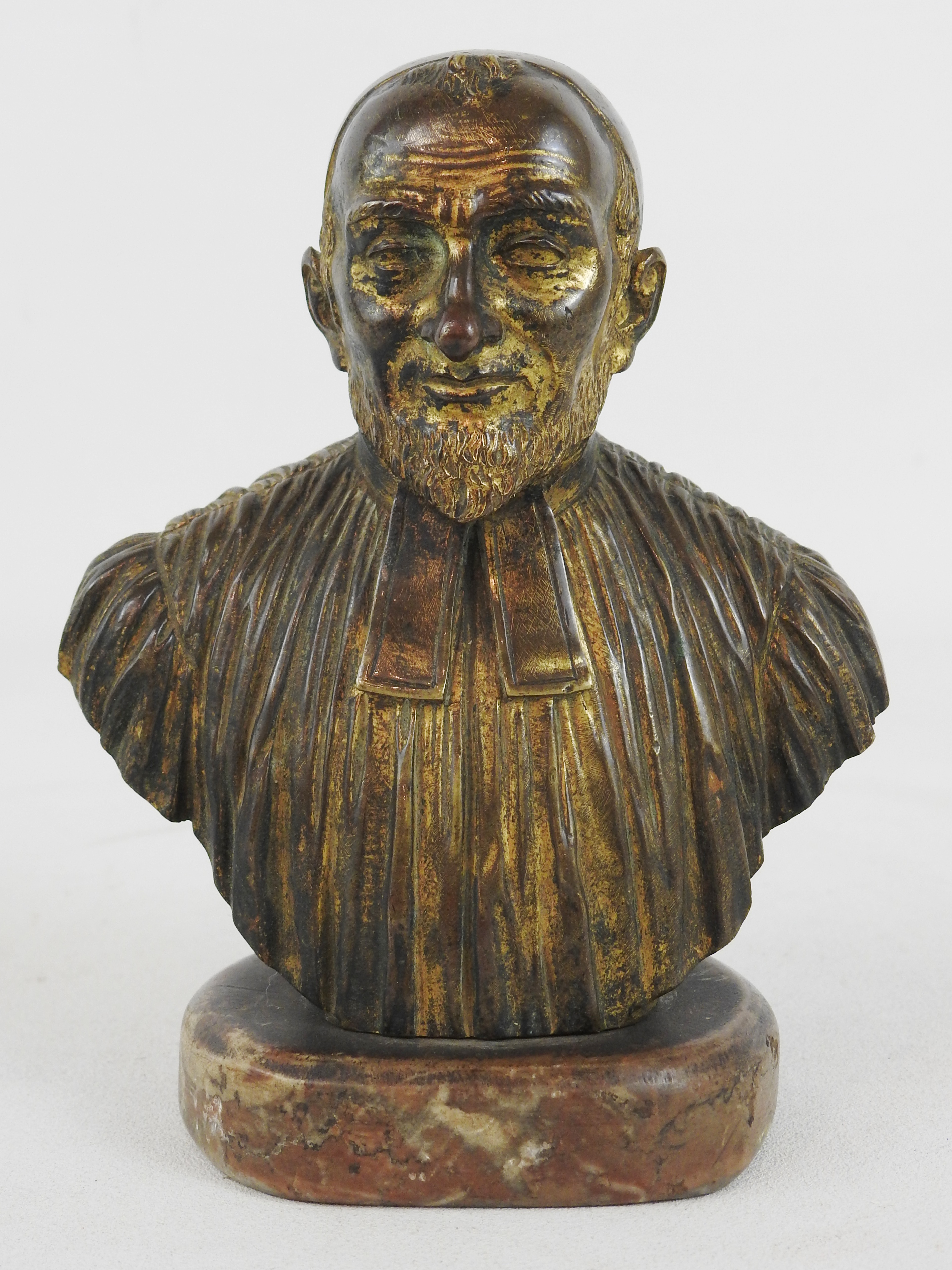 Bronze on marble pedestal; secular clergy collar; data not indicated