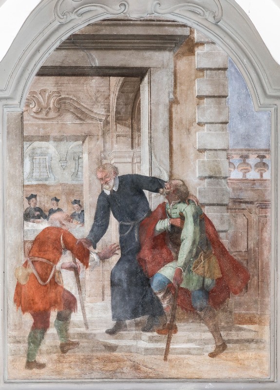 VdP receiving two poor men at the table of St. Lazare; data not indicated