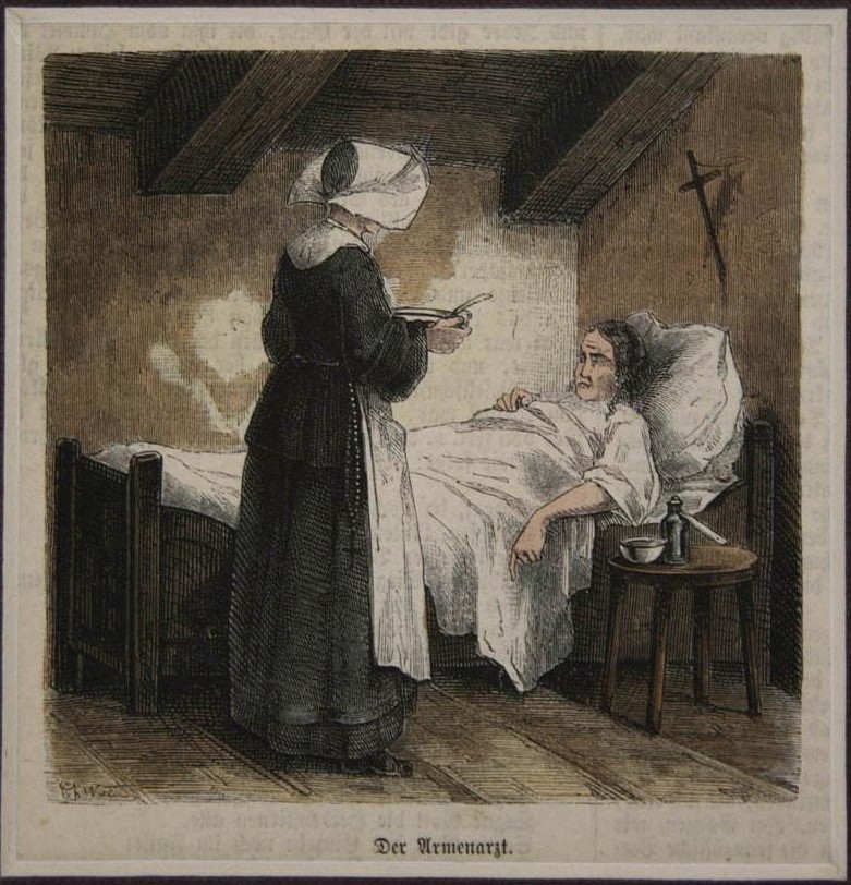 "The physician of the poor"; artist: Theodor Weber, ca. 1890, watercolor