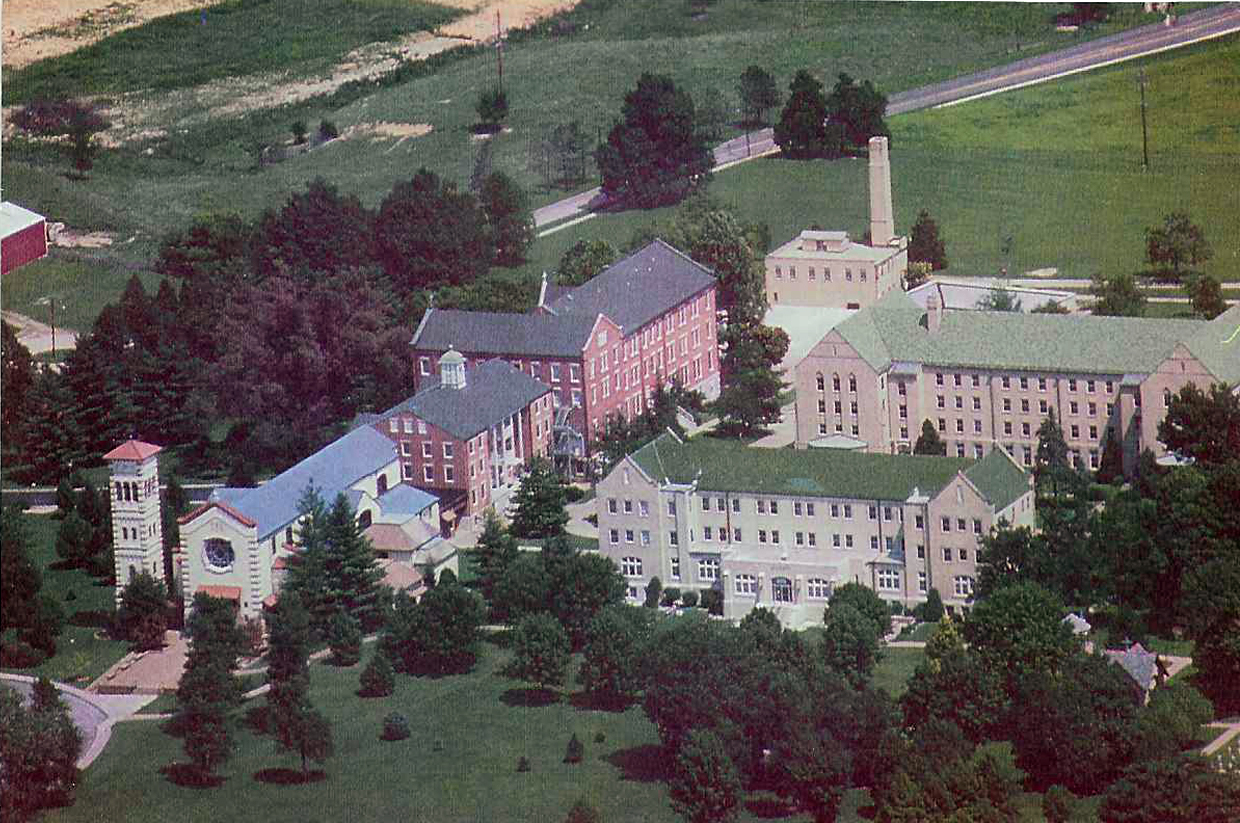 Date not indicated, but after bell tower addition in 1980; shows garages.