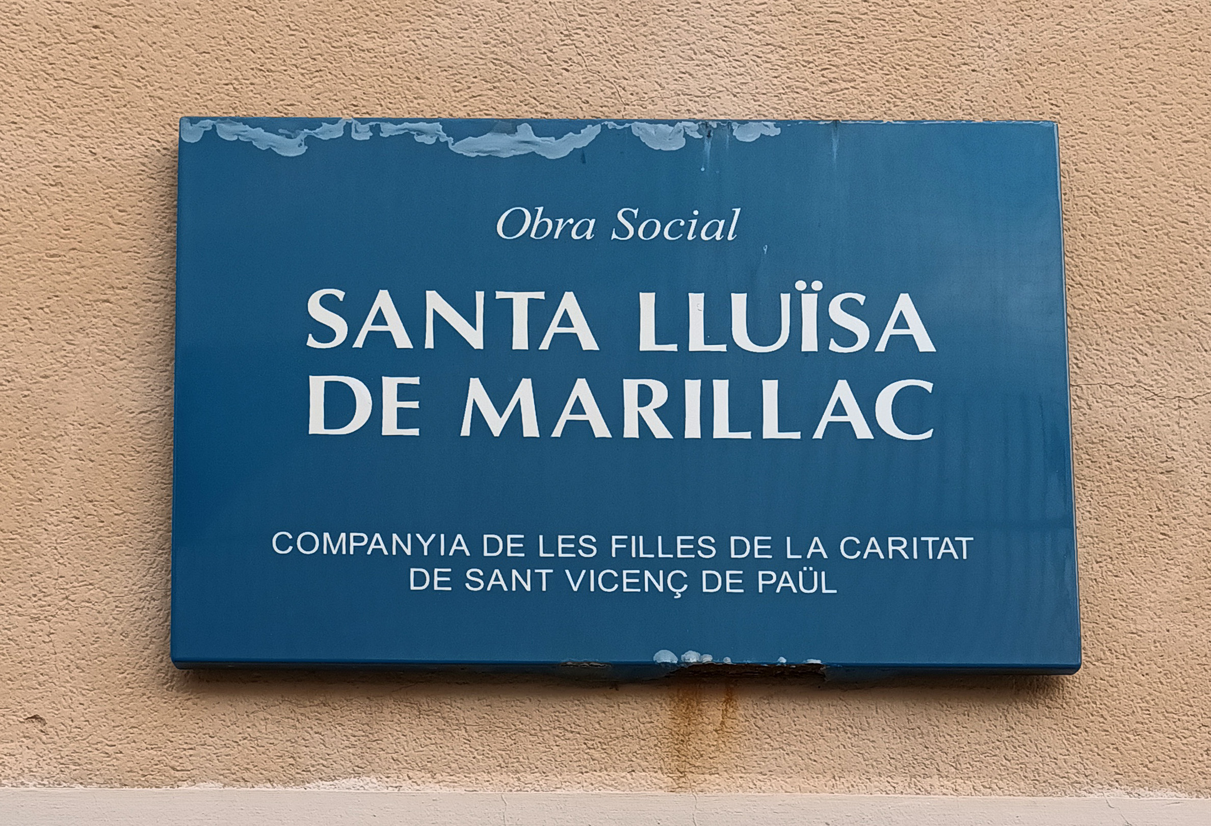 Outdoor plaque for the social work of St. LdM, in Barceloneta district of Barcelona, close to the harbor.