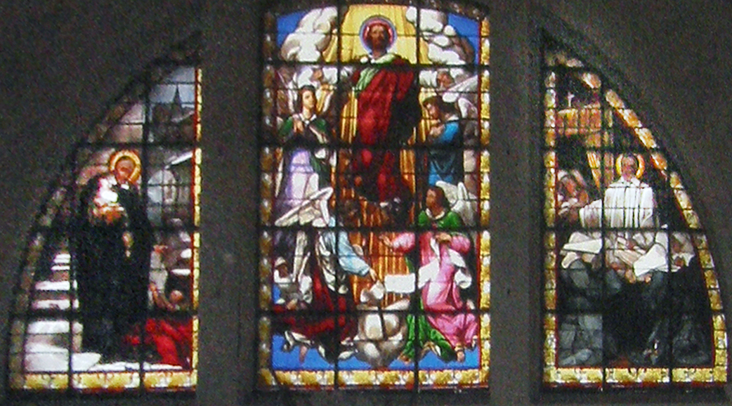 Left: Vincent gathers foundlings; right: Vincent gives rules to Sisters; artist: L. V. Gestat, 1865; photograph of a photograph, courtesy of Daughters of Charity Archives, Paris