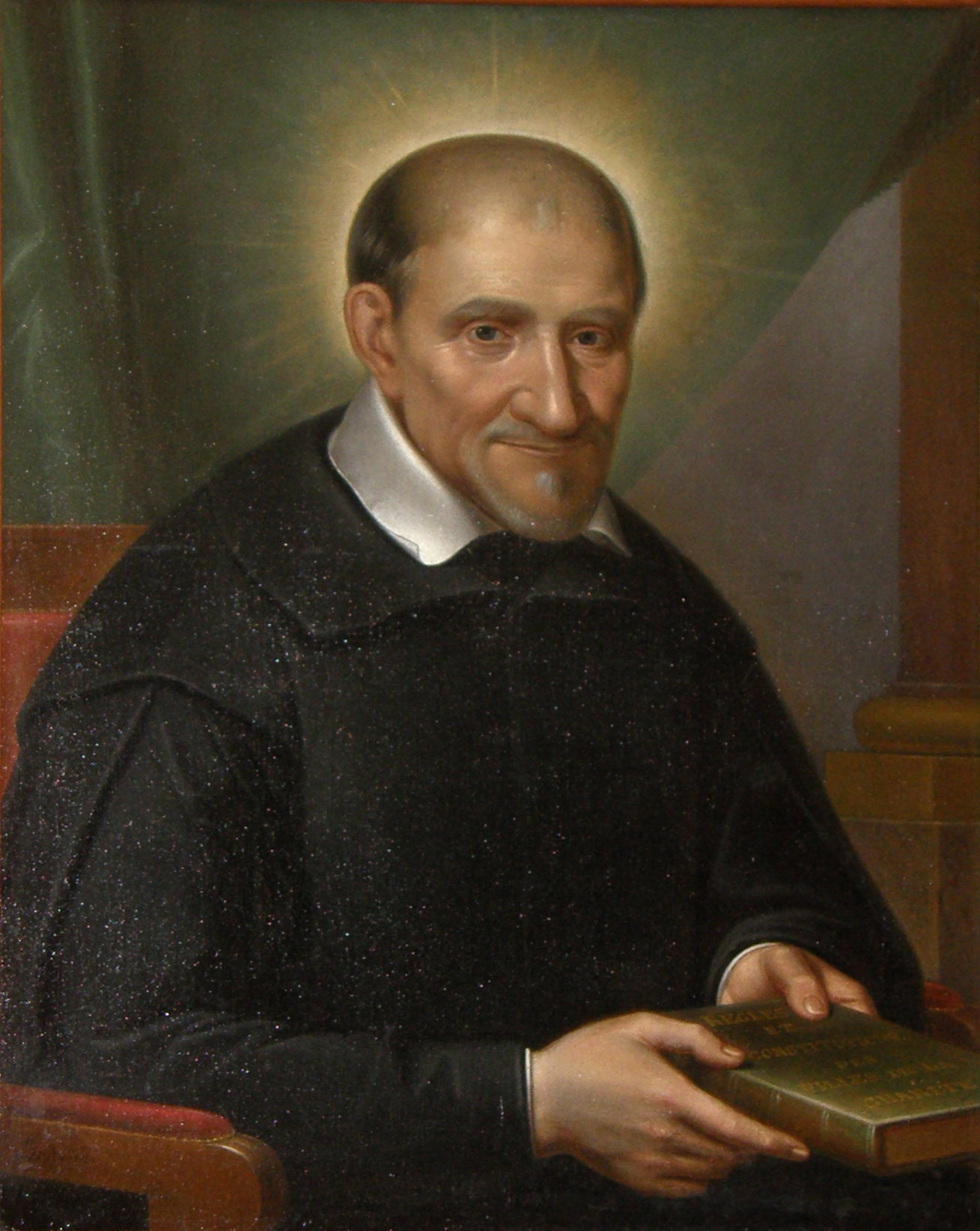 Vincent de Paul holding rule book of Daughters of Charity