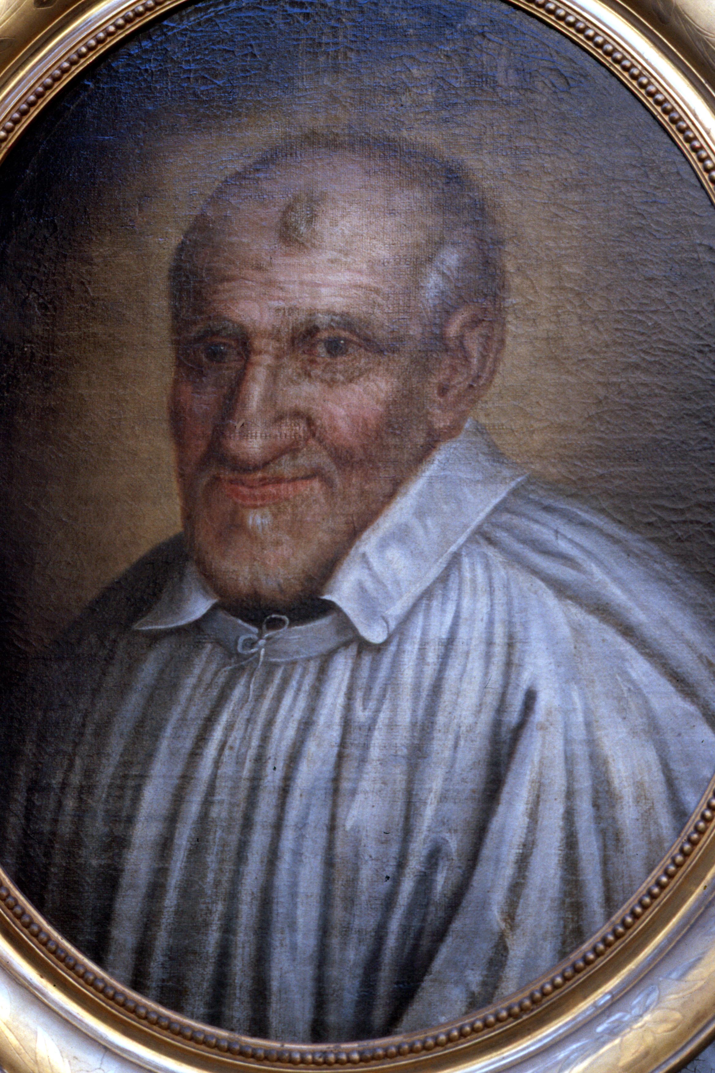 Oil painting, oval, Vincent de Paul, surplice, no stole, no skull cap; based on Moutiers St. Jean portrait; original in Paris, Vincentian mother house