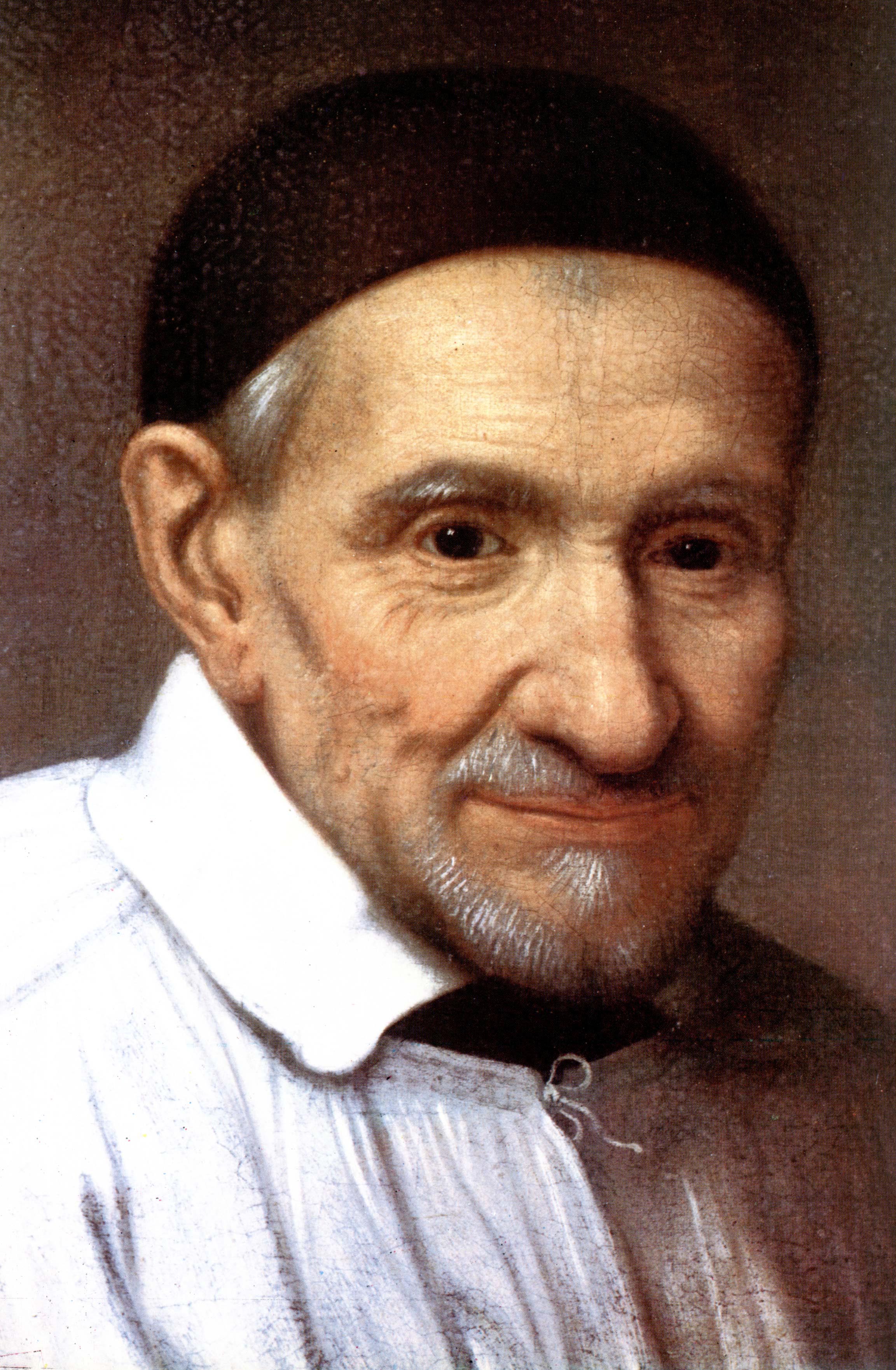 Vincent de Paul, cassock, surplice, skullcap; original at hospital chapel, Moutiers St. Jean