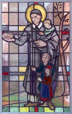 Vincent with three children, offering bread