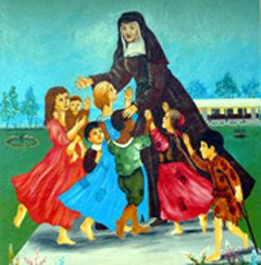 Louise with children; book cover