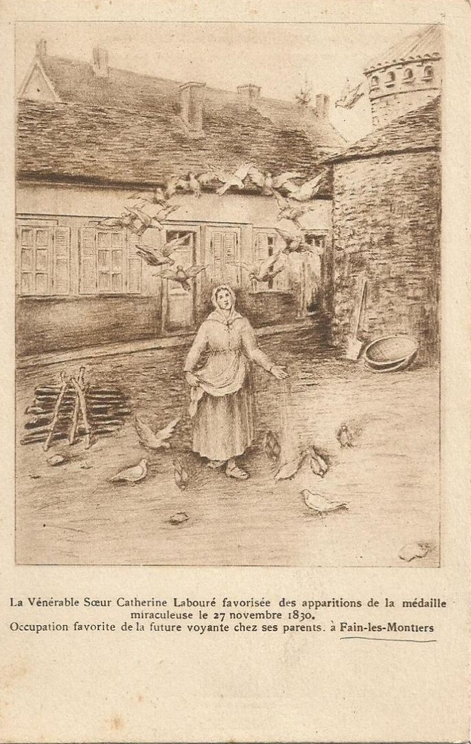 Farmyard scene, with pigeons