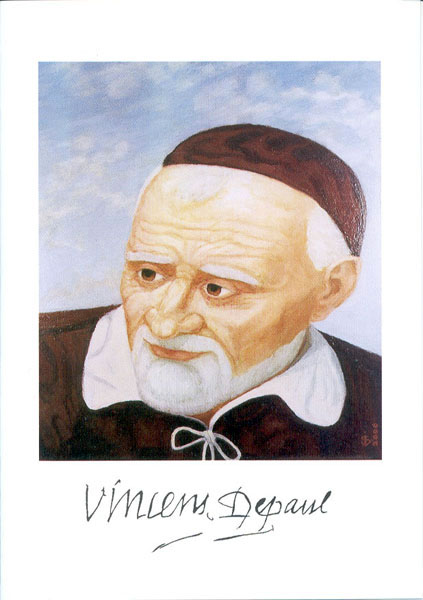 Water color drawing, Vincent de Paul, cassock, skullcap; with signature; internet image, may be copyrighted; location of original unknown