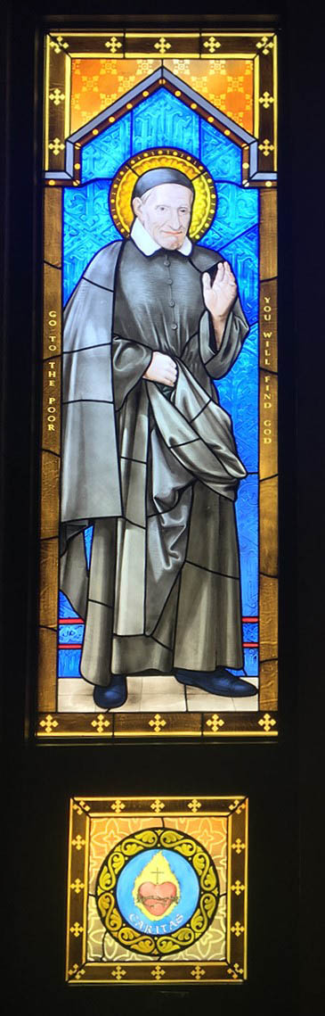 Location not given; burning heart of charity below