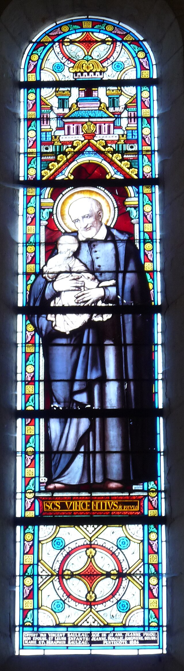 Text: Giff of Vincent Bauleau, ... Jeanne Priou, wife, and children. Pentecost, 1884