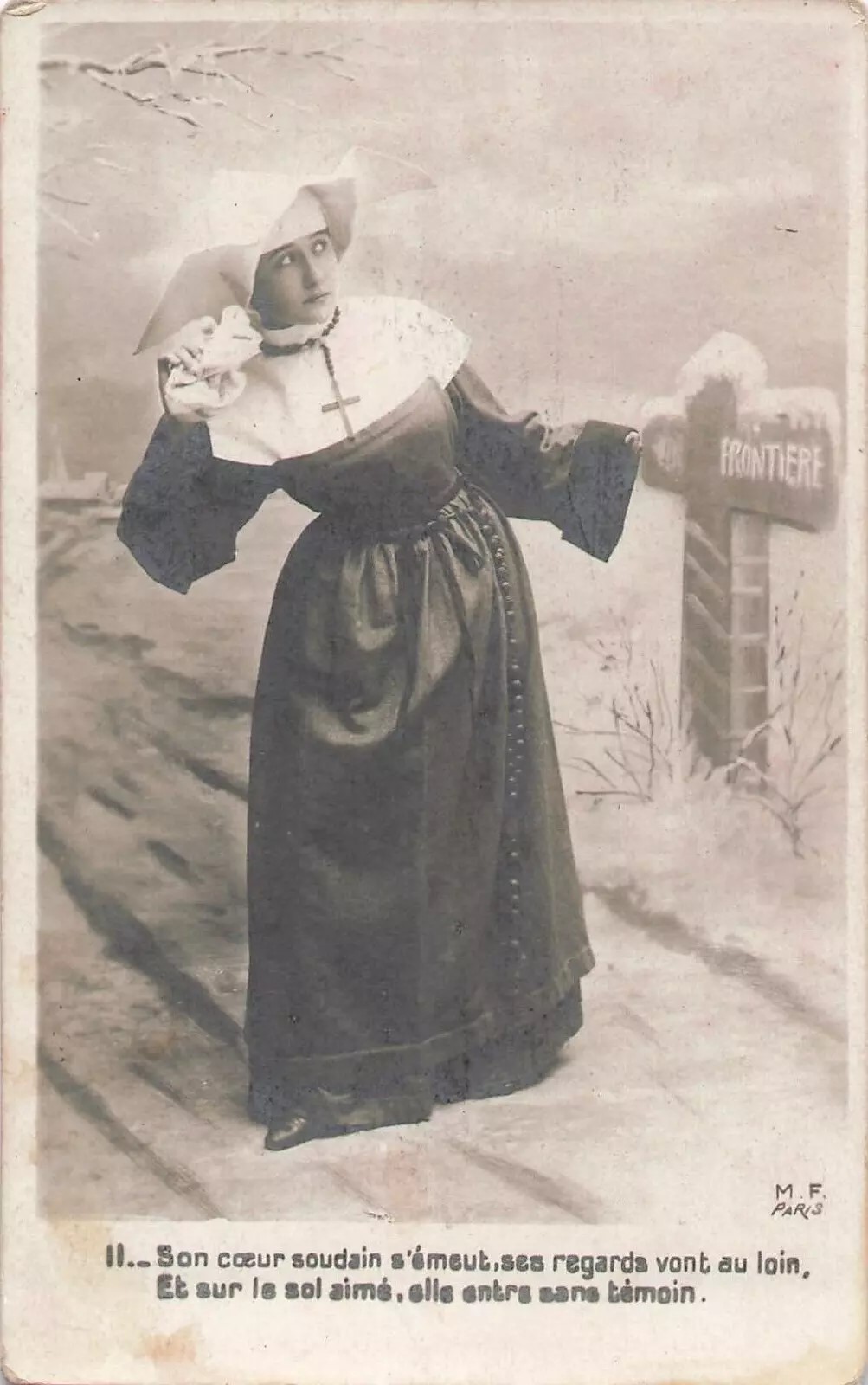 Text: Her heart is suddenly moved, her glances go far away, and on her beloved soil, she enters without a witness