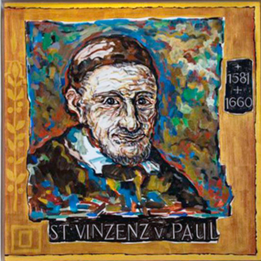 Oil painting, Vincent de Paul, head; name in German and dates of birth and death; original in mother house of Sisters of Charity, Zams