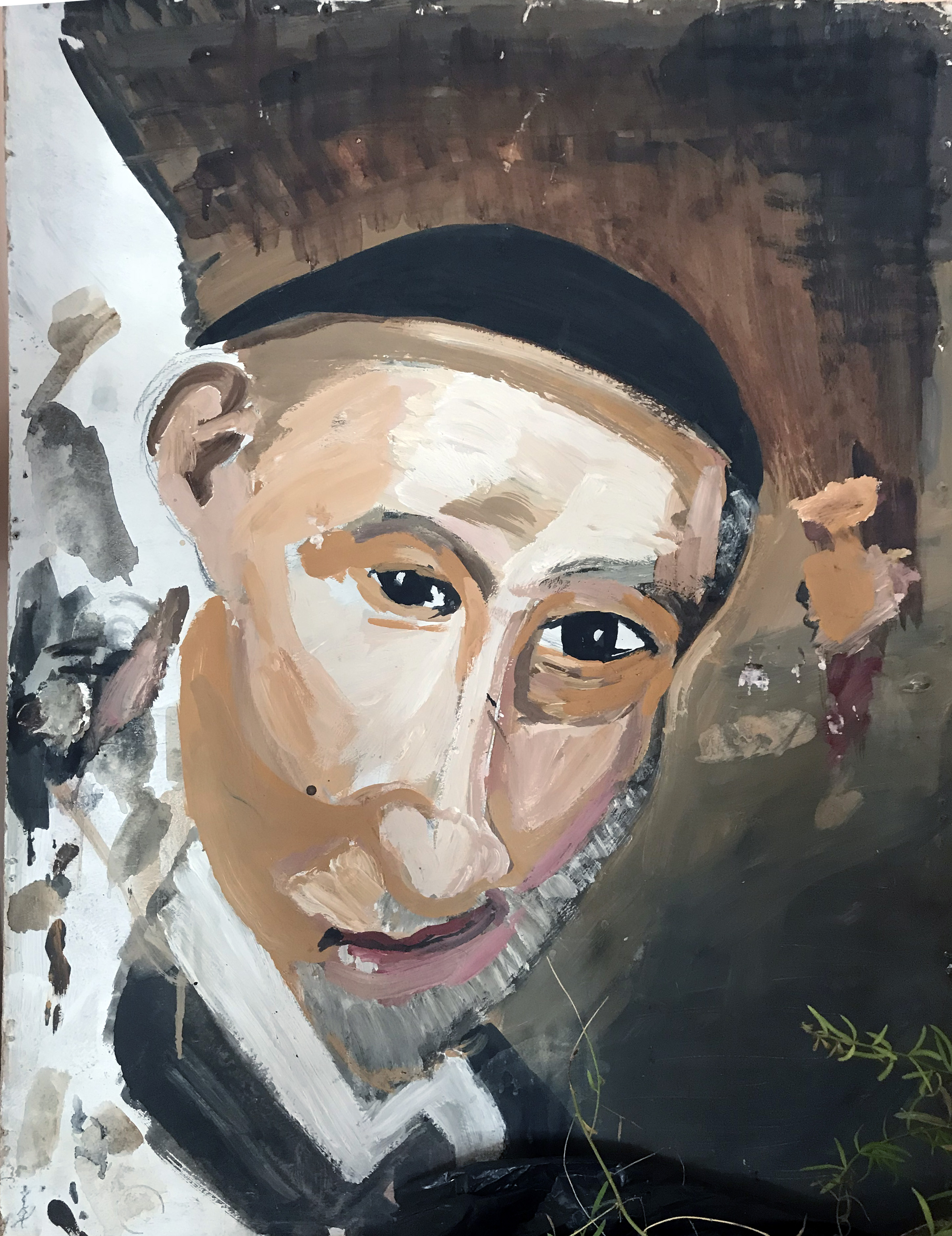 Painting in DePaul International Day Shelter, Odessa. The artist, a client at the homelessness center and a stroke patient, painted St. Vincent as if he too understood the painter’s situation. Photo courtesy of D. Holtschneider