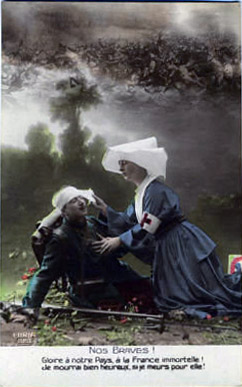 Text: Our brave men. Glory to our land, to immortal France. I will die happy if I die for her."