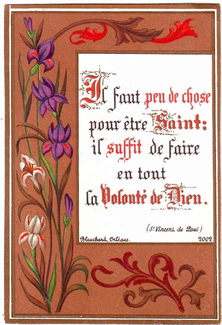 Text: It takes little to be a saint. It suffices to do will Will of God in everything.