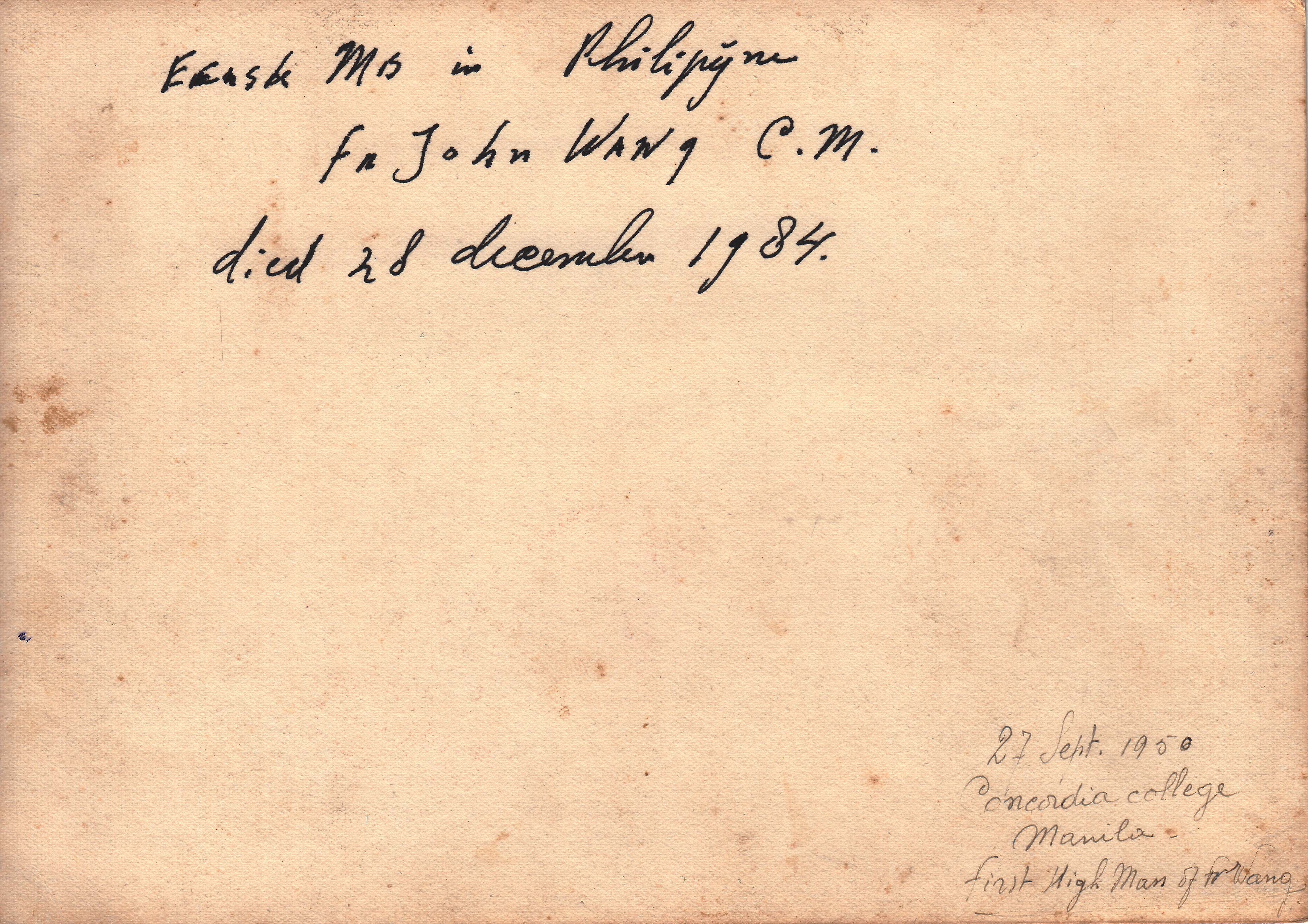 Dutch text: First Mass in Philippines; English: Concordia College, Manila, First High Mass, 27 Sept. 1950.