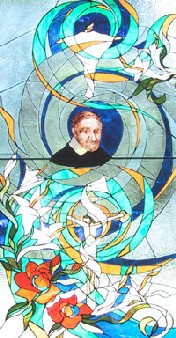 Vincent de Paul, bust, with image of risen Christ above, crucified Christ below. Internet image, Gnidovec site.