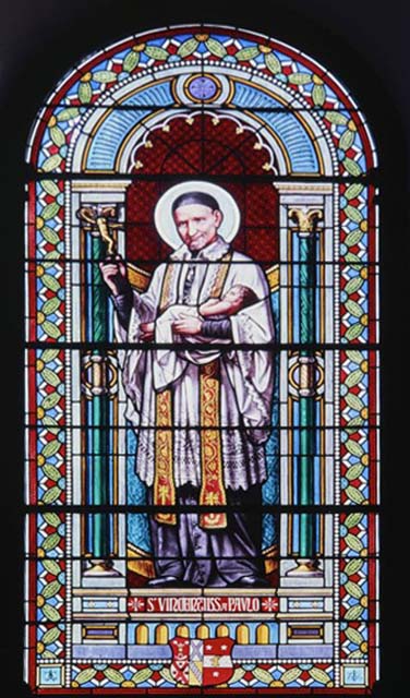 Child, crucifix; coat of arms below