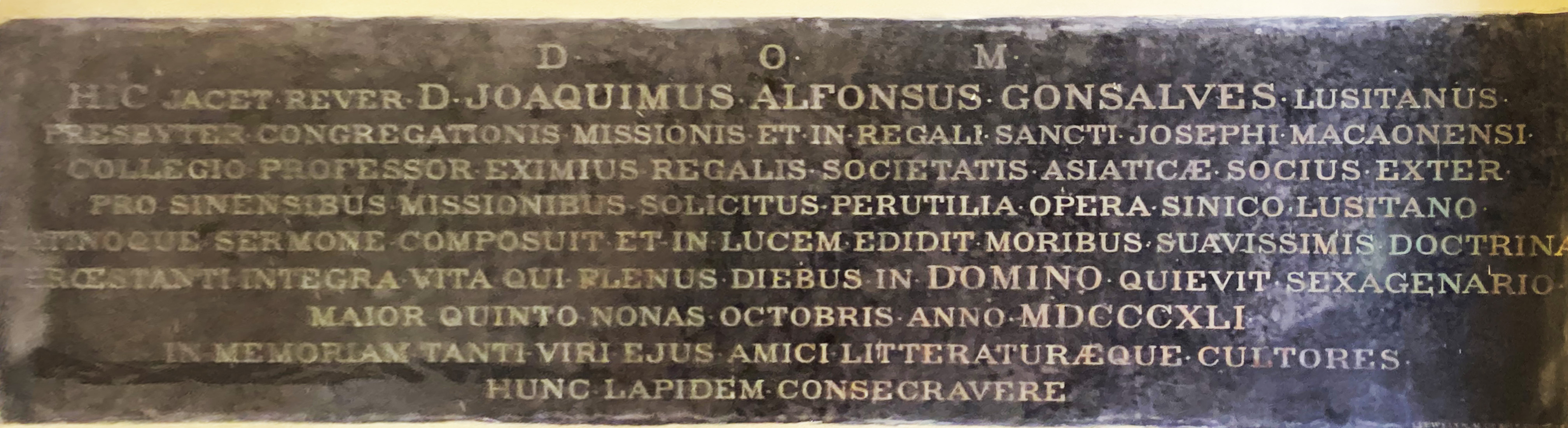 Commemorates his work on Chinese-Portuguese, dictionary, his morals. Died 1841. Donated by literary friends.