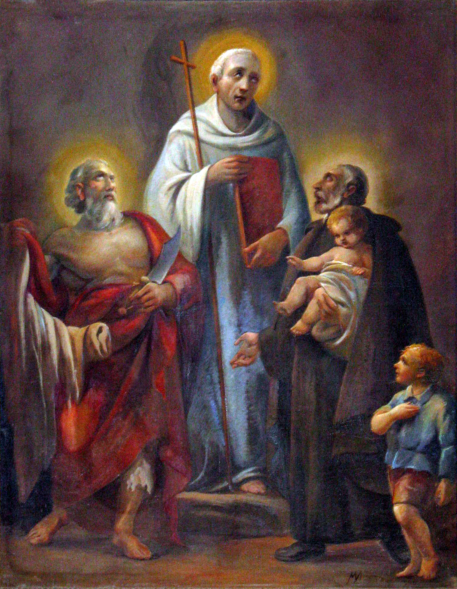 VdP, with Sts. Bartholomew and Bernard, patrons of the donor