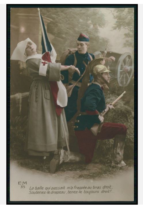Text: The passing bullet struck my right arm; carry the flag, always keep it straight.