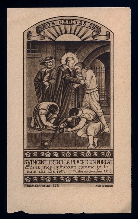 Text: SVdP takes the place of a galley prisoner.