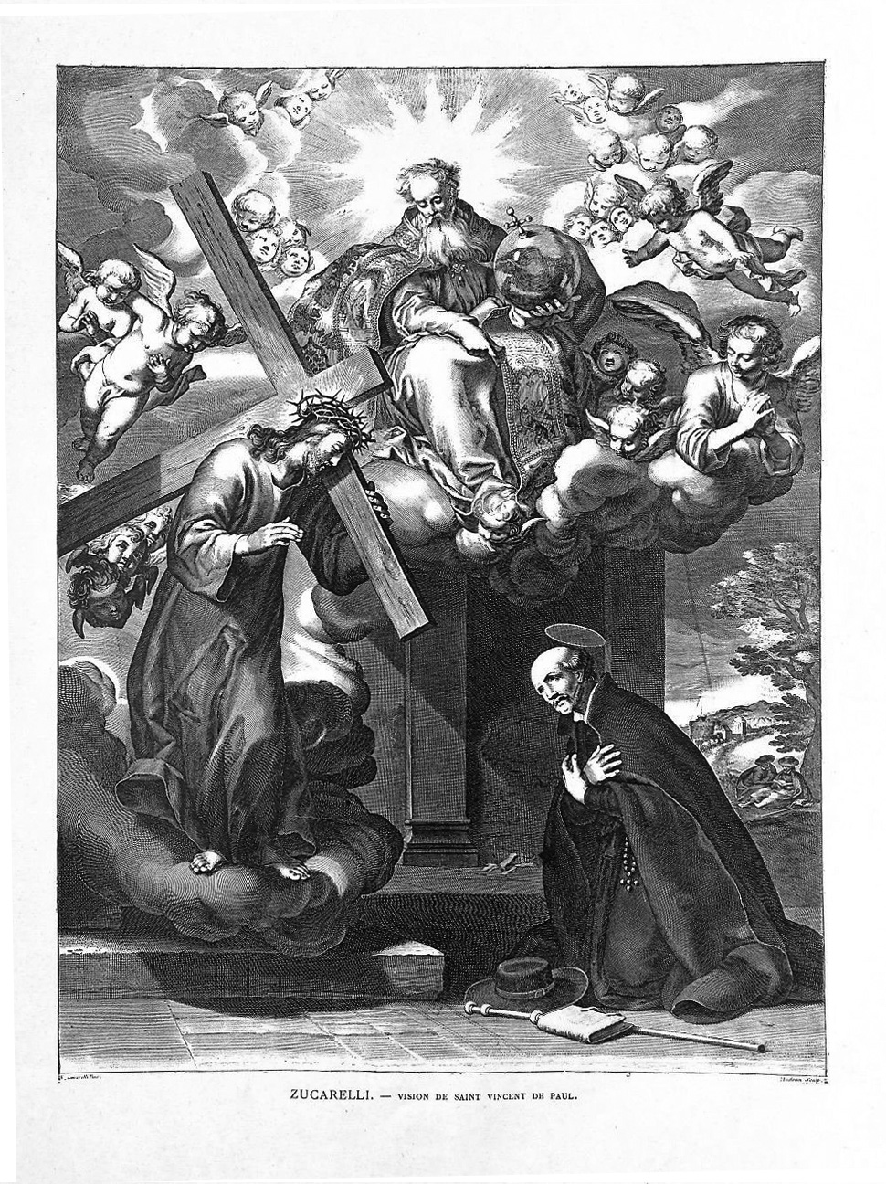 Probably not SVdP, shown here as a pilgrim, seeing a vision (otherwise unknown)