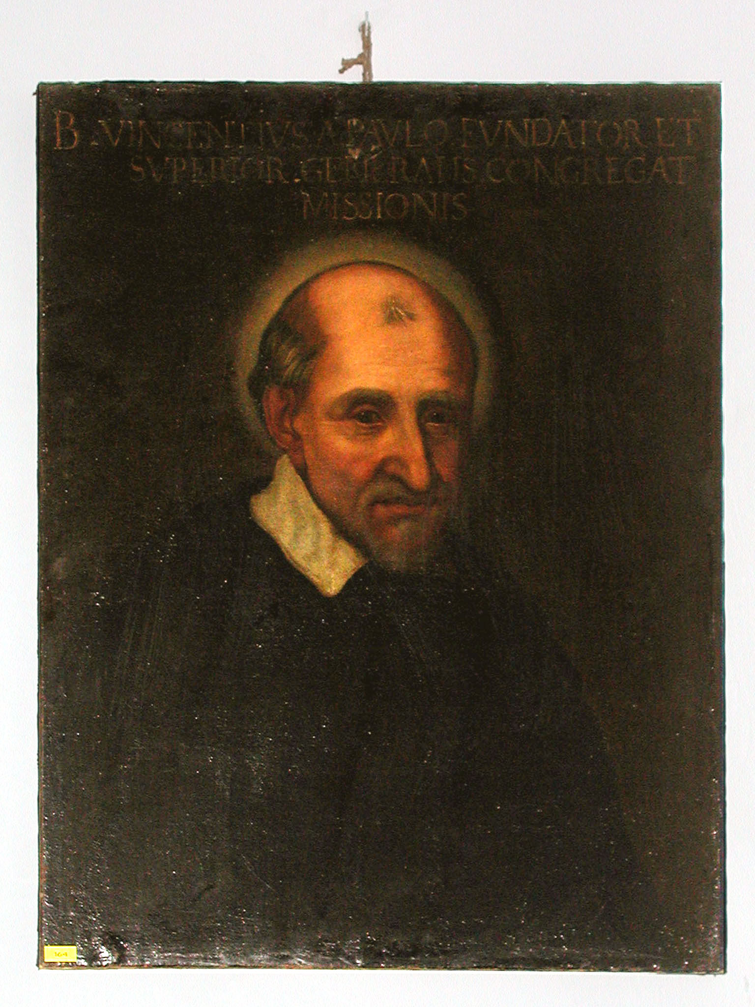 Oil painting; Vincent de Paul, identified as "Blessed," so before 1737; text in Latin: Blessed Vincent de Paul, Founder and Superior General of the Congregation of the Mission; original in Vincentian house, San Silvestro, Rome