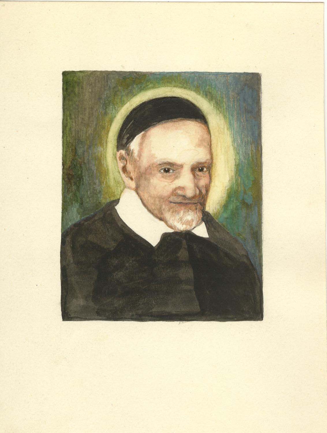 Watercolor, Vincent de Paul, cassock, skullcap, halo; in archives of General Curia; unsigned, undated