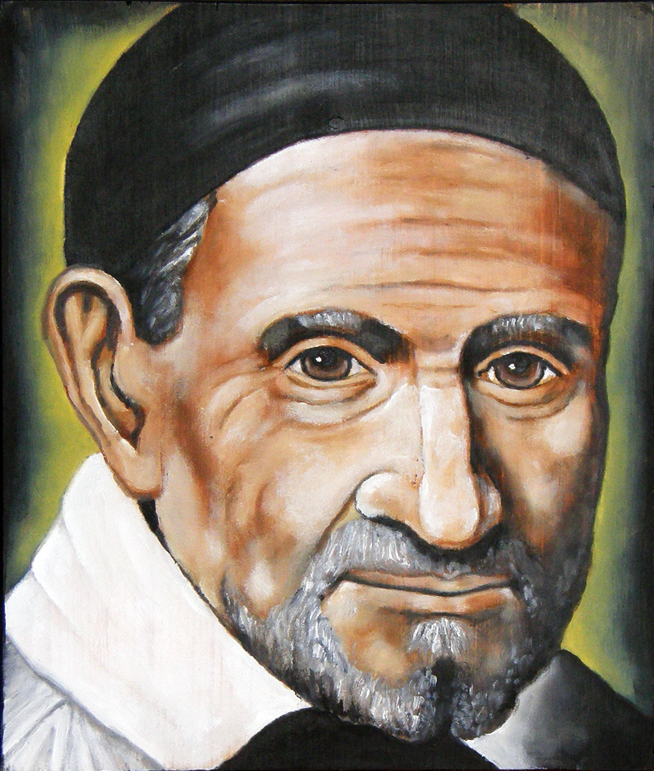 Oil on wood panel; portrait at Vincentian General Curia, Rome; painted 2008