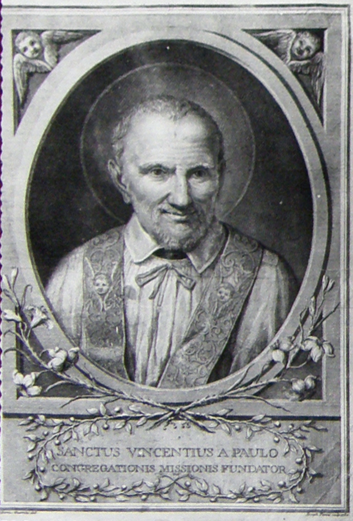 Latin text: SVdP, founder of the Congregation of the Mission BW photograph in archives of the General Curia