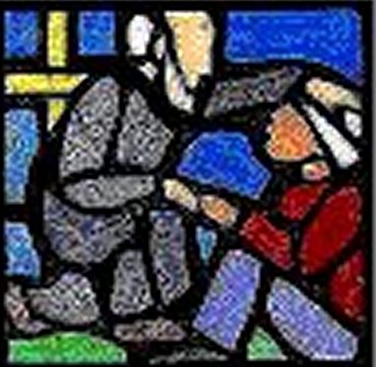 Vincent de Paul, grey beard, kneeling to help poor person; probably internet image; location of original unknown