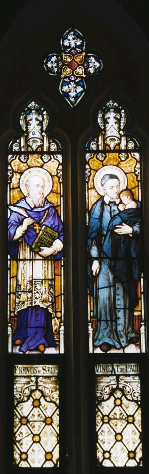 Double window; Francis de Sales and Vincent de Paul; standard depictions; location of original unknown