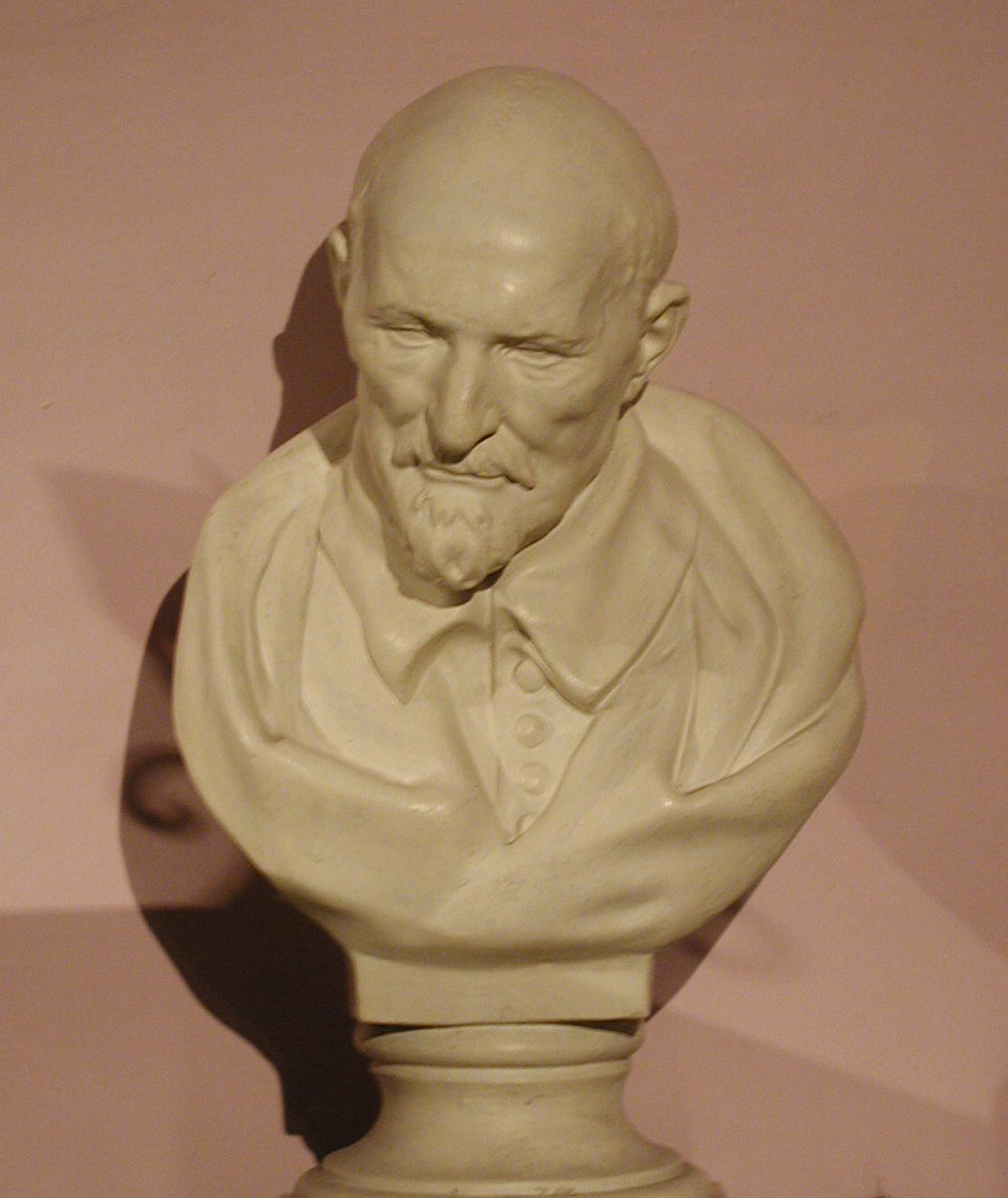 Plaster bust, Vincent de Paul in cassock, cape; original in provincial house, Daughters of Charity museum, Turin