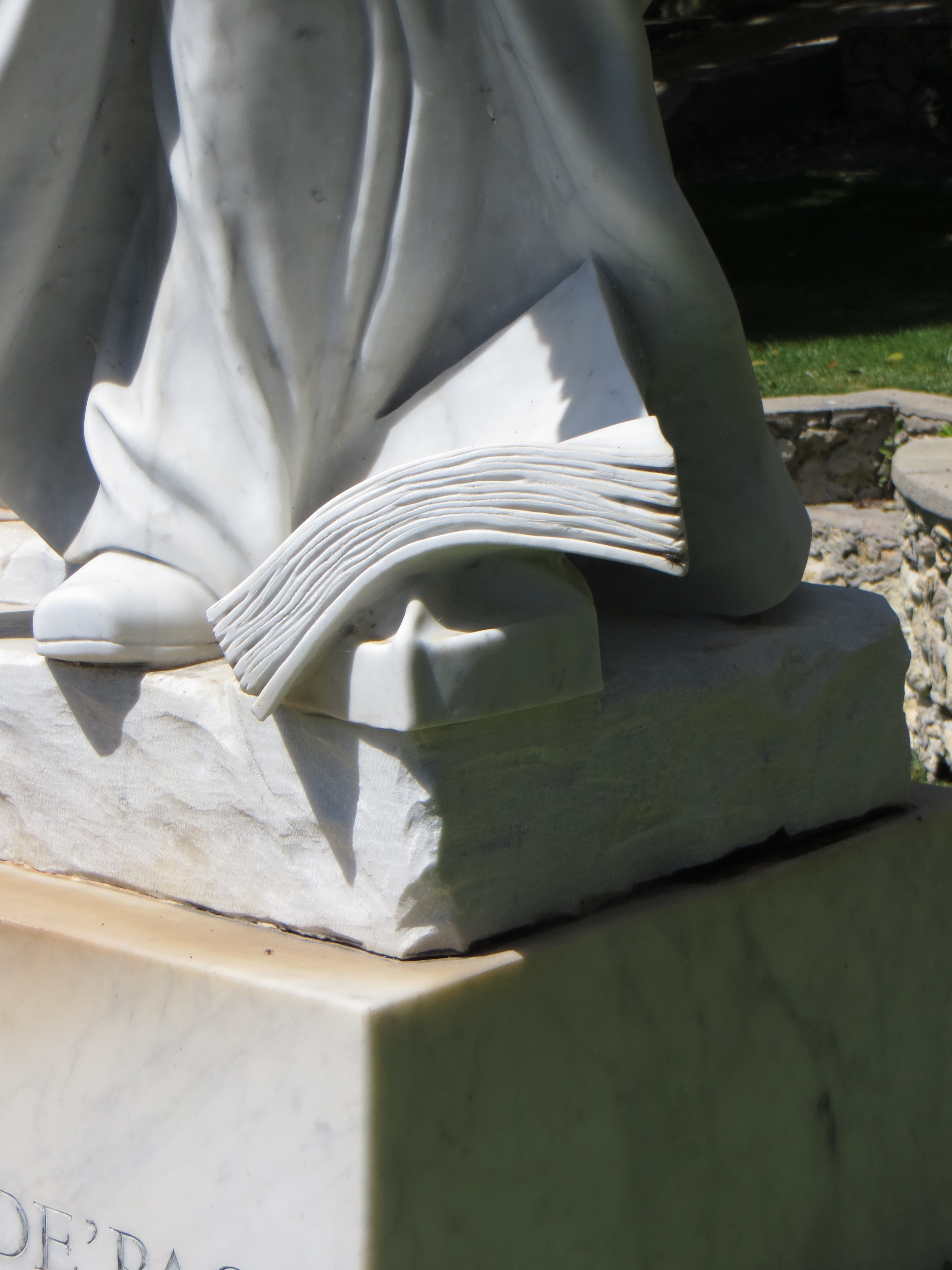 Book supported by his biretta, as in the Vatican statue by Bracci