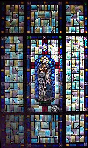 Vincent de Paul, standing, cassock, cape, skullcap, halo; holding basket, offers bread to a kneeling poor man; location of original unknown