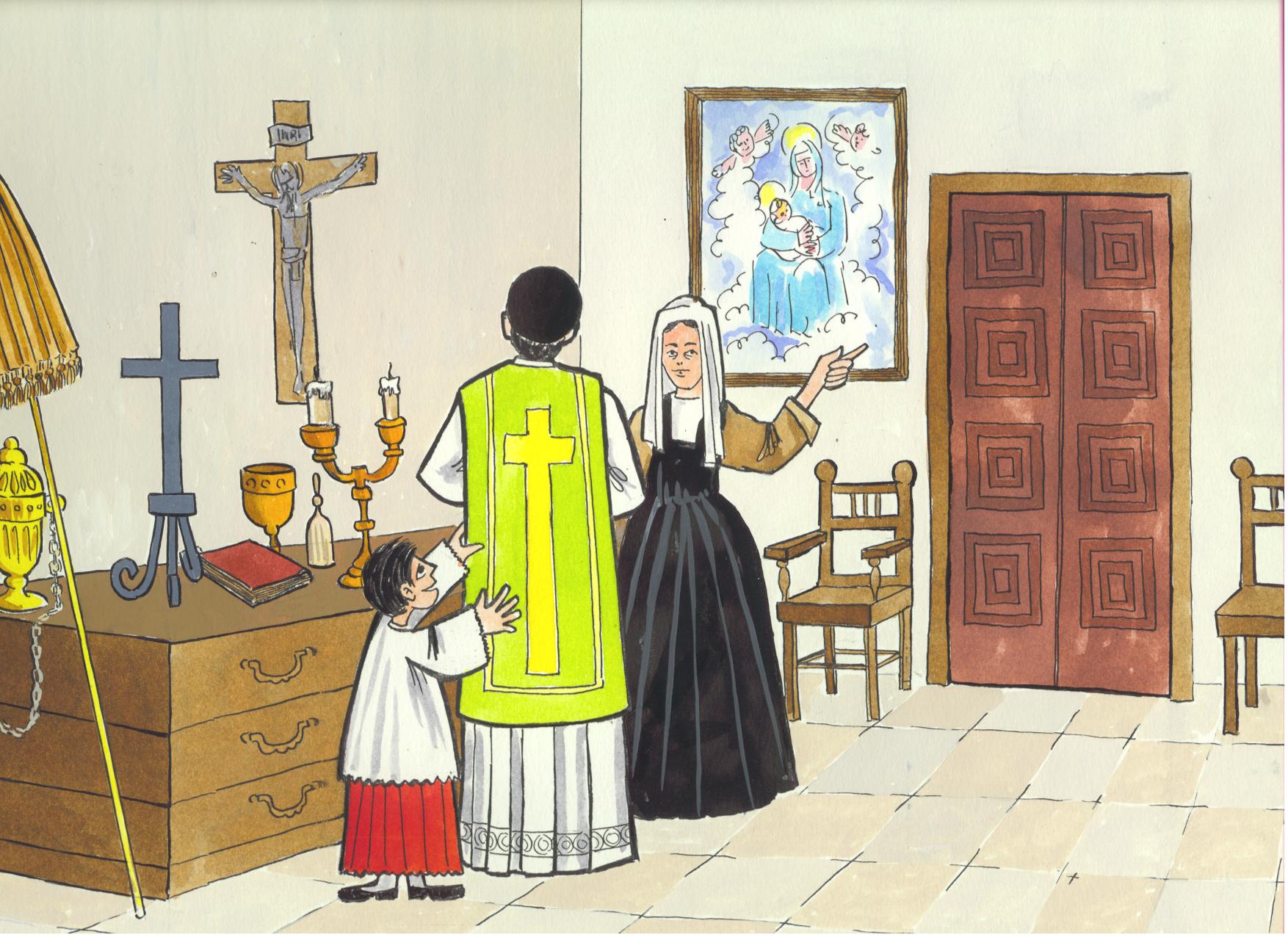 Vincent de Paul, preparing for mass, hears of needy family, Chatillon