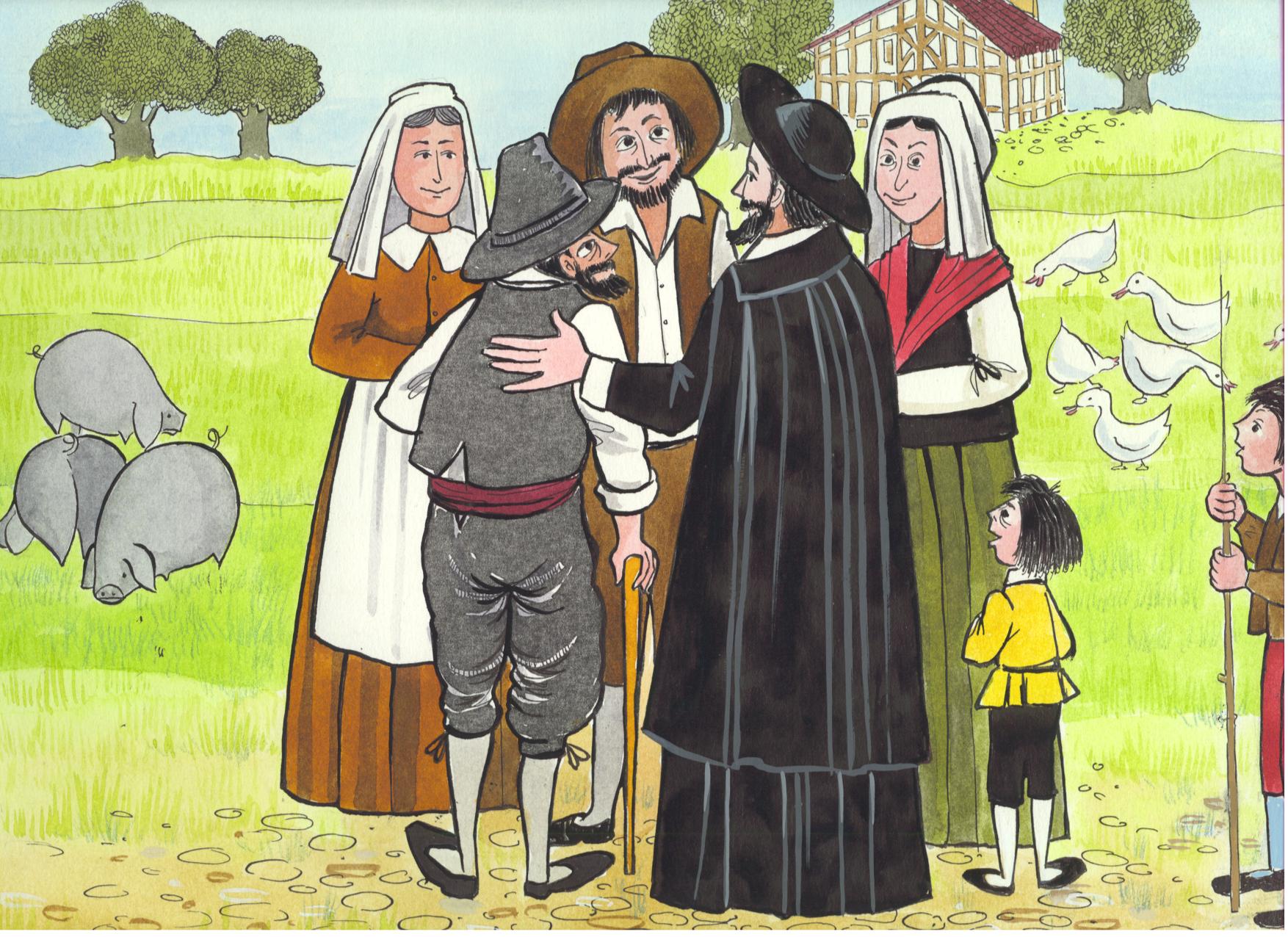 Vincent de Paul with family members on return visit