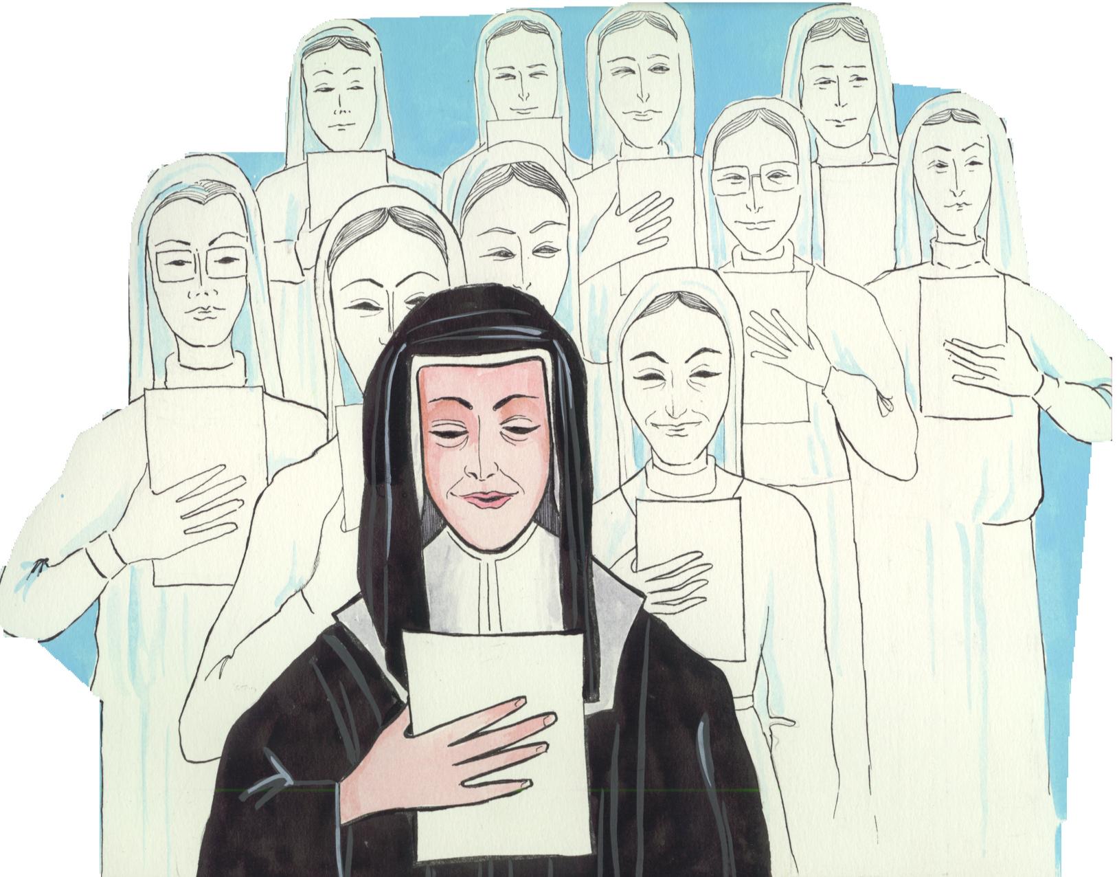 Louise de Marillac and Daughters of Charity, holding papers